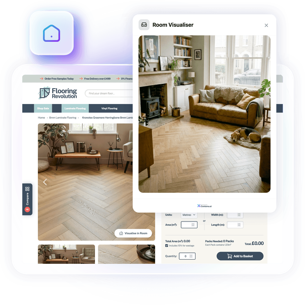 Let your customers see exactly how products look in a real space before they buy. Furniture, flooring, wall art, paint colours, your shoppers place them in a room setting directly from your product pages, turning browsers into confident buyers.